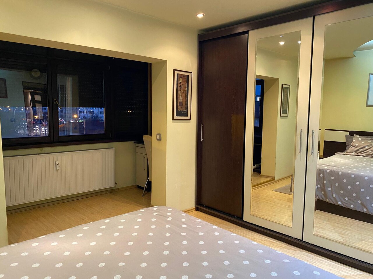 DEMOCRATIEI apartament 2 camere modernizat, confort1A, semidecomandat situat la etajul 3 al unui imobil cu 4 niveluri, constructie beton 1986. Apartamentul este renovat total cu materiale de calitate: parchet, gresie, faianta, termopane si usi lemn stratificat, jaluzele exterioare actionate electric, aer conditionat si se vinde mobilat si utilat. Acte la zi.