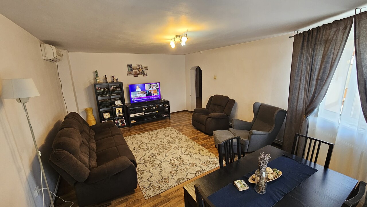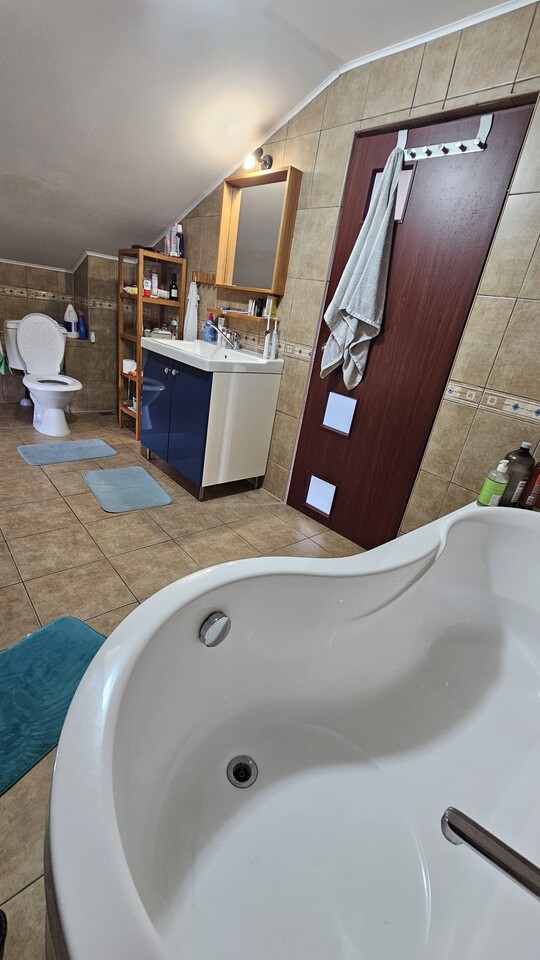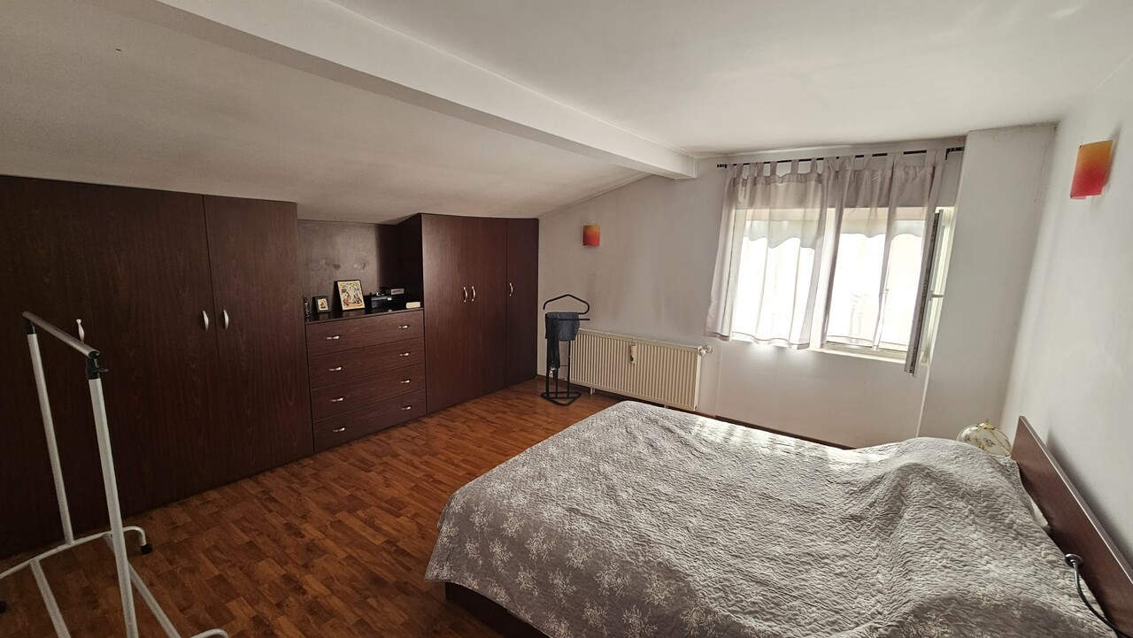 PLOIESTI VEST - MITICA APOSTOL , casa P+M, 2004, fundatie beton, pereti BCA, avand amprenta de 113mp, si suprafta utila totala de 177mp plus terasa de 13mp, amplasata pe un teren de 496mp cu deschidere generoasa la strada de 20ml. La parter casa dispune de 1 living, 1 dormitor/birou cu dressing, o baie, 1 bucatarie, 1 dressing, iar la etaj sunt 2 dormitoare, 1 living, 1 baie si terasa. Peretii sunt izolati la exterior cu polistiren, acoperisul este izolat cu vata minerala, folie anticondens si rigips, iar interior imobilul dispune de : usa metalica, usi interioare din lemn stratificat, tamplarie PVC cu geam termopan, centrala termica cu distribuitor pe etaj, calorifere din otel, gresie, faianta, parchet laminat, vopsea lavabila, scara din lemn, balustrada din lemn, aparat de aer conditionat. Gard fier forjat cu soclu de beton . Acte la zi. Pret 159000 euro.