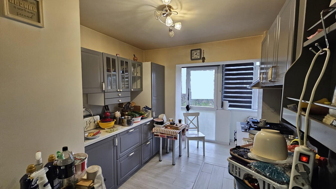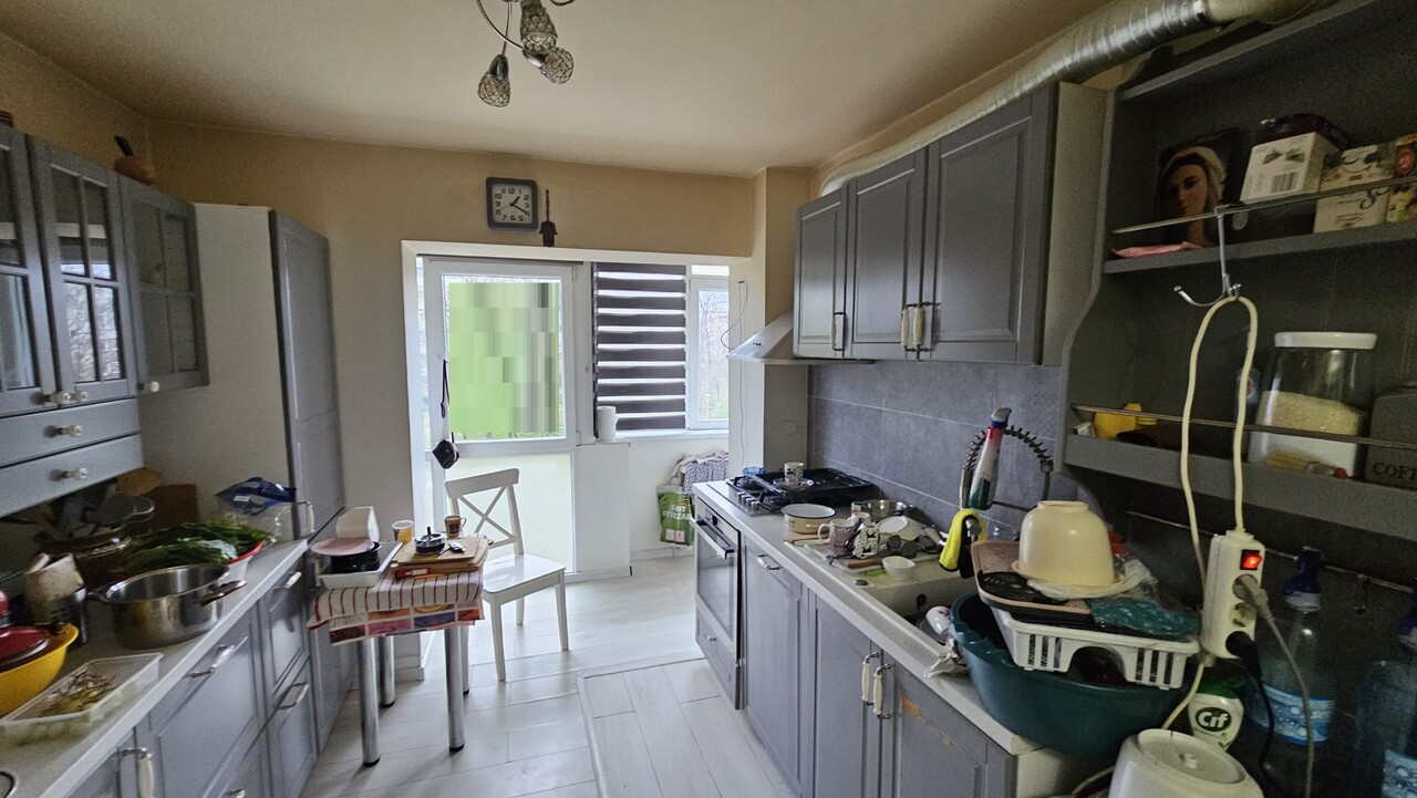 NORD zona Complexul Mare, apartament 3 camere modernizat - total renovat , confort1 , semidecomandat situat la etajul 2 , cu vedere spate si lateral , avand 2 balcoane : unul la sufragerie si bucatarie si al doilea la cele doua dormitoare. Baie are geam spre exterior. Apartamentul prezinta multiple imbunatatiri fiind renovat total , inclusiv instalatie electrica si sanitara , aer conditionat . Acte la zi . Bonus se vinde semimobilat - semiutilat la pretul de 78000 euro.
